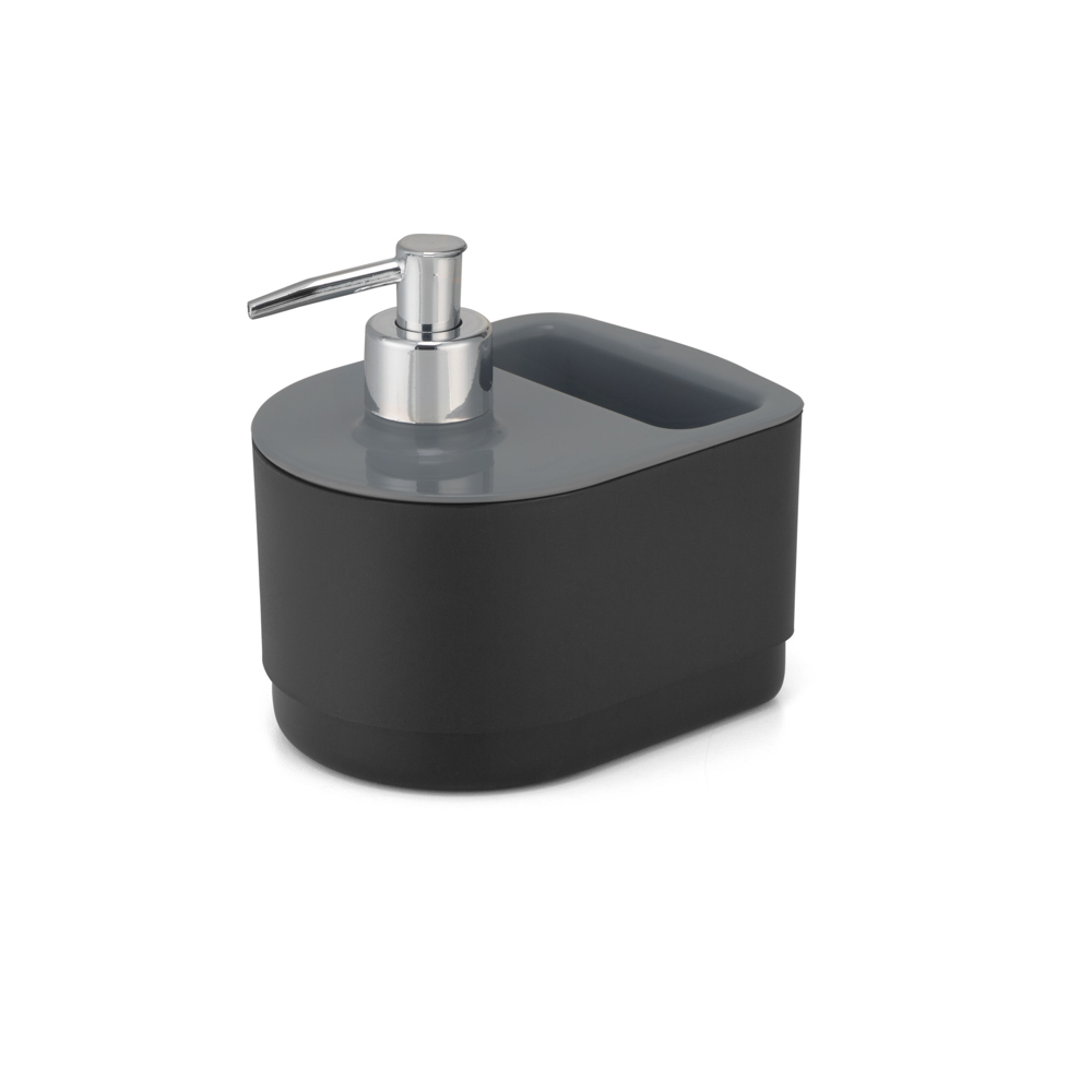 O dispenser possui válvula dosadora que permite dosagem do detergente gerando economia, e compartimento para esponja que é fechado, ou seja, o produto vai da pia direto para a gaveta ou armário sem escorrer água. Fabricado em material resistente e flexível (Polipropileno), além do plástico ser texturizado impedindo riscos e facilitando a higienização.