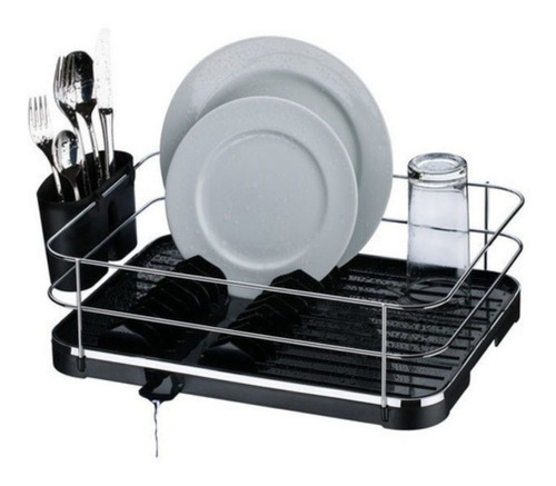 - Tem capacidade para 12 pratos e um porta talheres removível, que pode ser posicionado onde for mais conveniente. É fabricado em plástico e aço carbono, com detalhe em aço piatina cromado (aço em formato achatado).