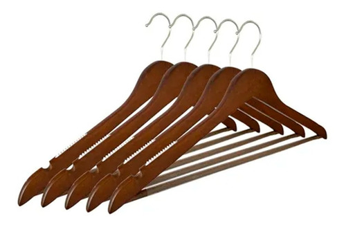 Kit 5 Cabides De Madeira Vintage Mogno Com Silicone Antideslizante 44cm